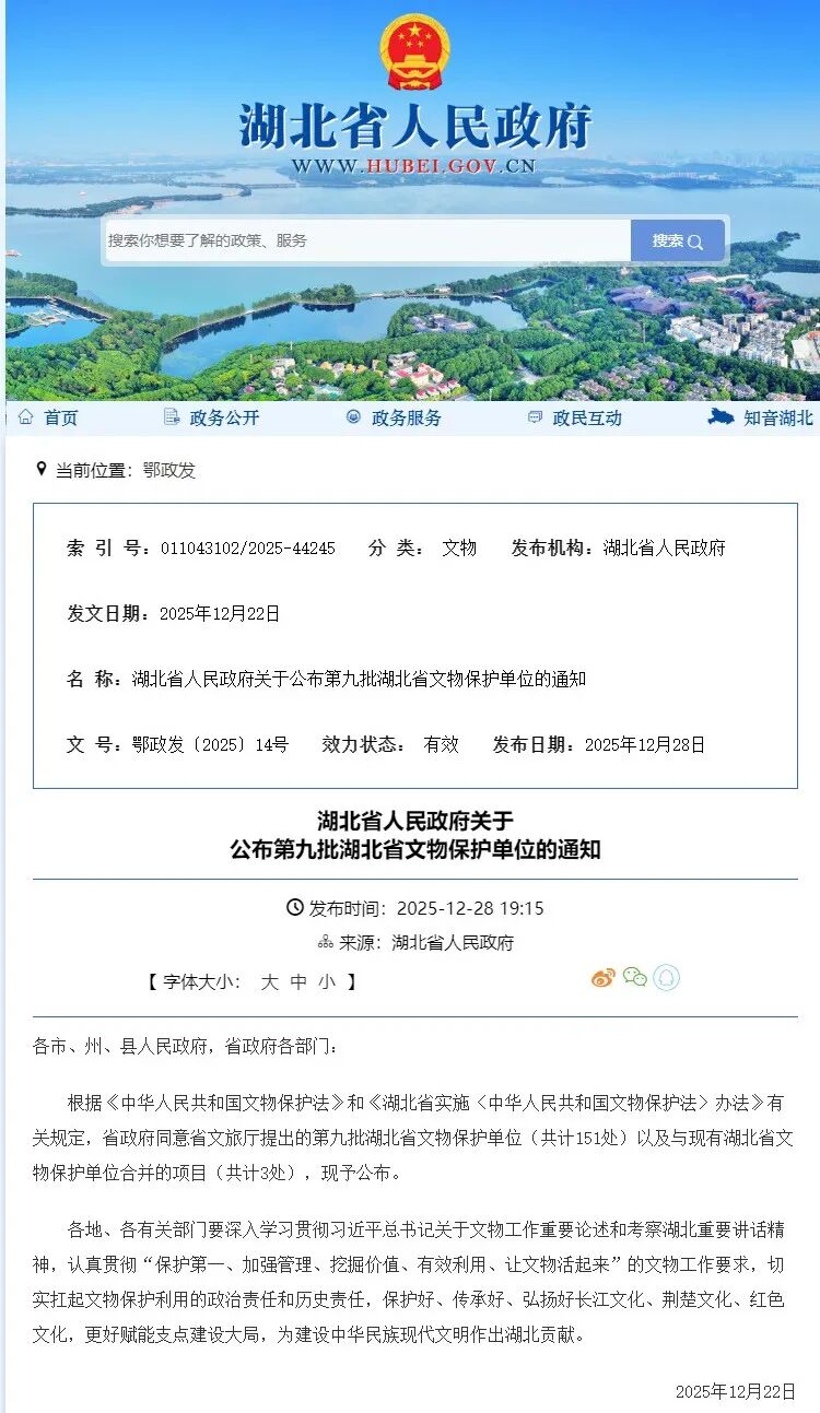湖北省人民政府公布了