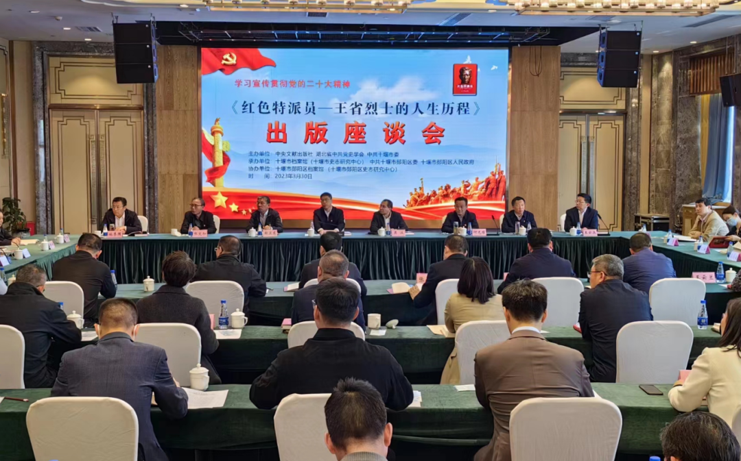 3月30日,《红色特派员—王省烈士的人生历程》出版座谈会在郧阳区召开。中央文献出版社有限公司董事长、总经理、总编辑杨茂荣;中共党史出版社有限公司董事长、总经理、总编辑吴江;中央编译出版社有限公司董事长、总经理、总编辑郗卫东,省委党史研究室主任何光耀等参加座谈会。市委常委、宣传部部长蔡静峰主持座谈会。区领导李海伦、张继道参加座谈会。