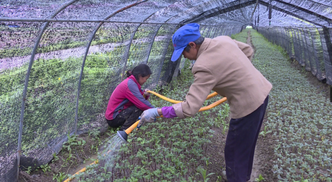 眼下正是菊花育苗的最佳时期,近日,在五峰乡东峰村的菊花育苗基地,工人们正抢抓时机给新培育的菊花苗浇水。