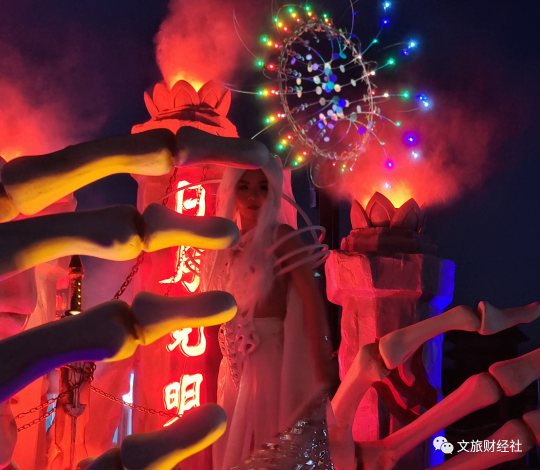 此外,武当不夜城通过武当品牌的活化再造、创新演艺、多元表达和破圈突围,实现对武当传统文化的创造性转化和创新性发展。以武当山“丹墙翠瓦”为视觉符号,不同于全国所有不夜城的艺术灯柱,以54组国内最大的风动艺术装置群——“元炁森林之眼”构成具有鲜明特色,形成独具一格,强大的视觉锤。在郧山汉水为底色、全景雾森的曼妙仙境中,游客不仅可以化身锦衣卫体验国内首创的《玄武当道》AR剧本杀游戏,欣赏前卫灵动的《武当动八景》当代艺术雕塑,欣赏《太极三丰》《九歌山鬼》《奉天造人》《九阴真经》《梨花传奇》《在水一方》等十余组精彩绝伦的行为艺术演艺,体验30余组网红打卡装置和互动娱乐设施,更能品尝来自全国各地100余家特色美食小吃,在云南傣族、彝族、佤族演员带领下进入“龙人相遇”的篝火狂欢。入仙境、听仙乐、观仙女、品仙食、享仙福。在这里,体验一场如梦如幻的仙暇之旅。