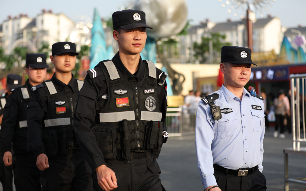 街区内外,郧阳区公安民警围绕保安全、保畅通,开展治安巡逻、交通劝导。