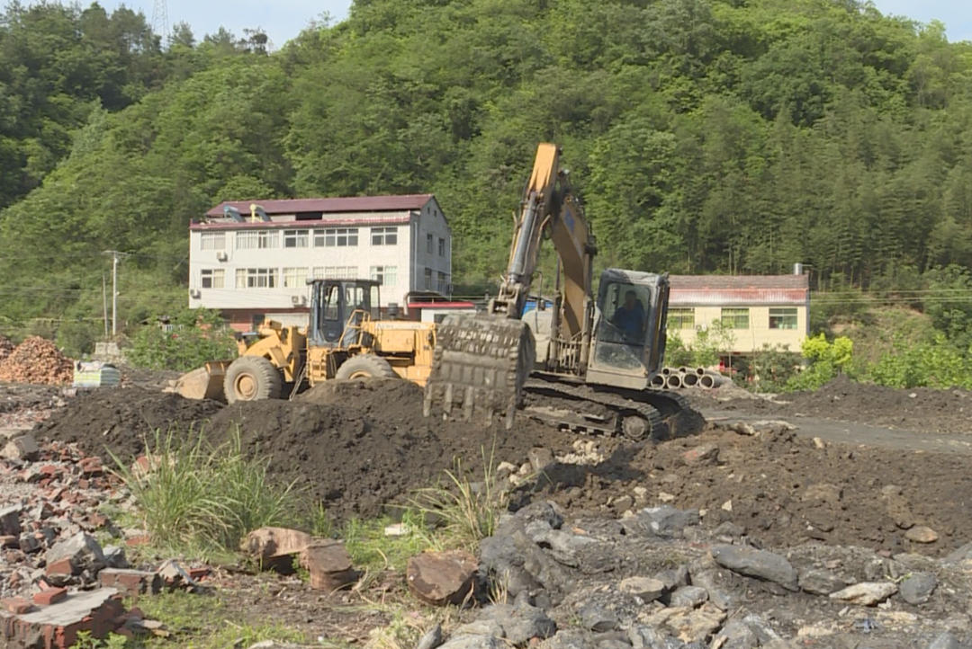 日前,在鲍峡镇小花果农产品加工厂项目(二期)建设现场,挖掘机来回穿梭,施工人员正在进行场平工作,现场一派繁忙的施工景象。