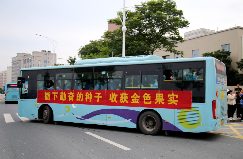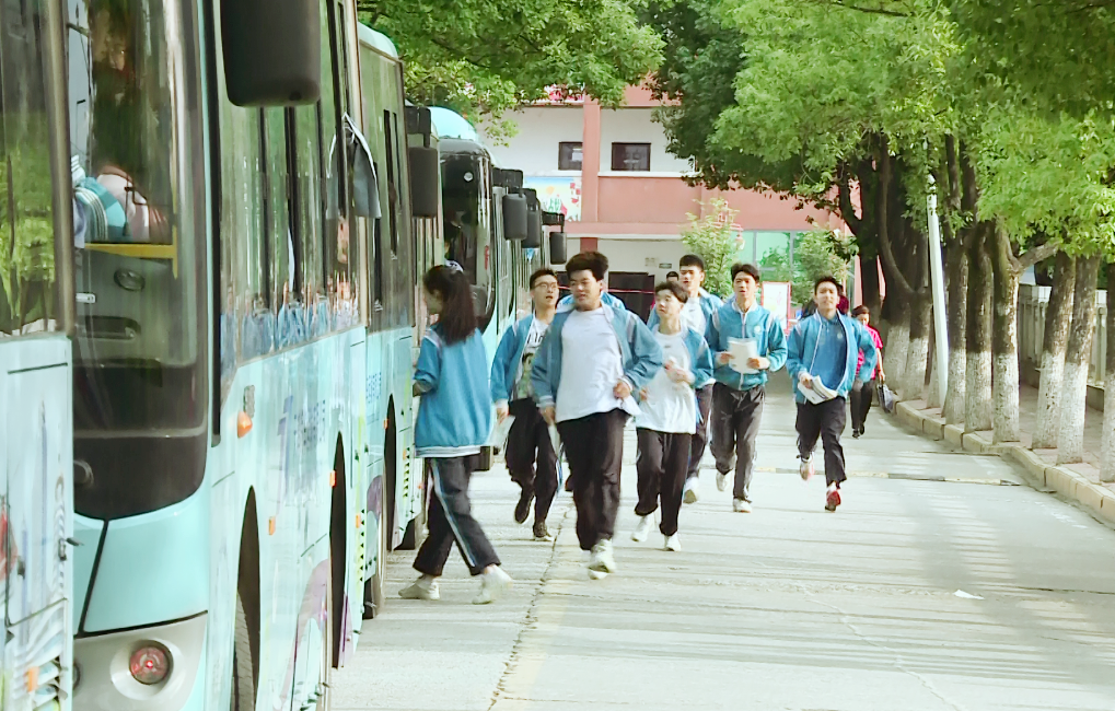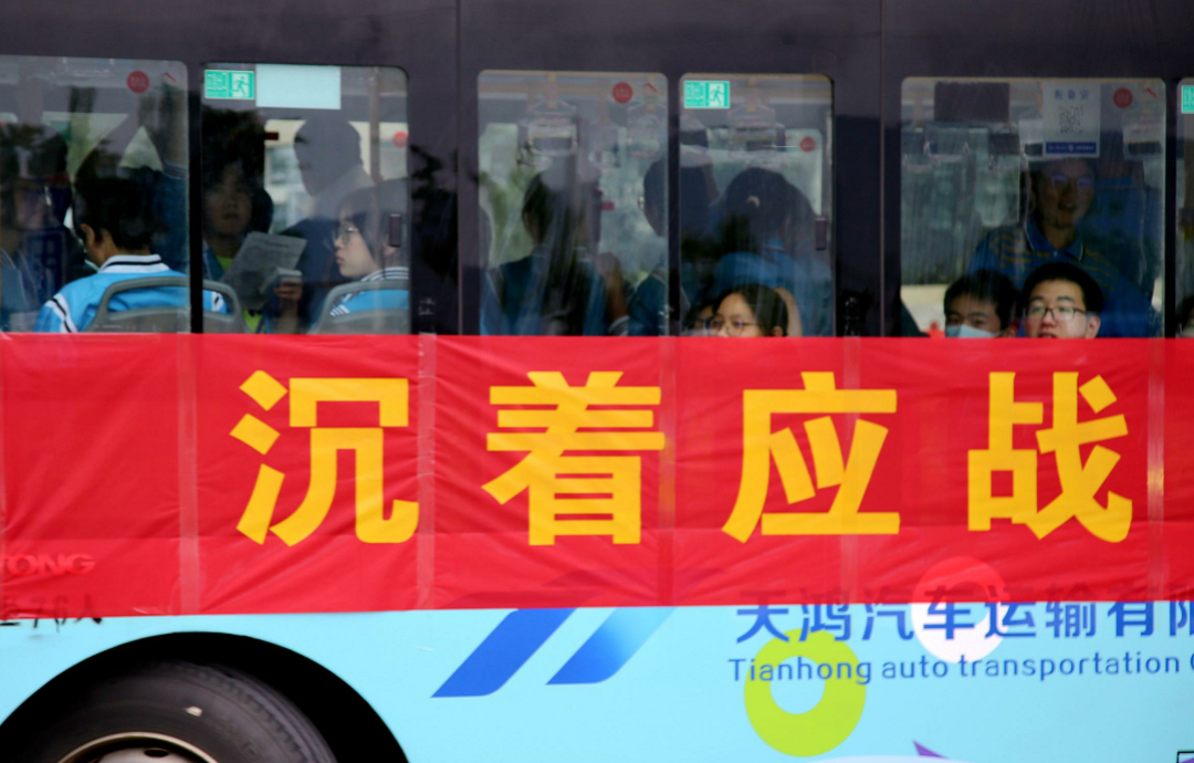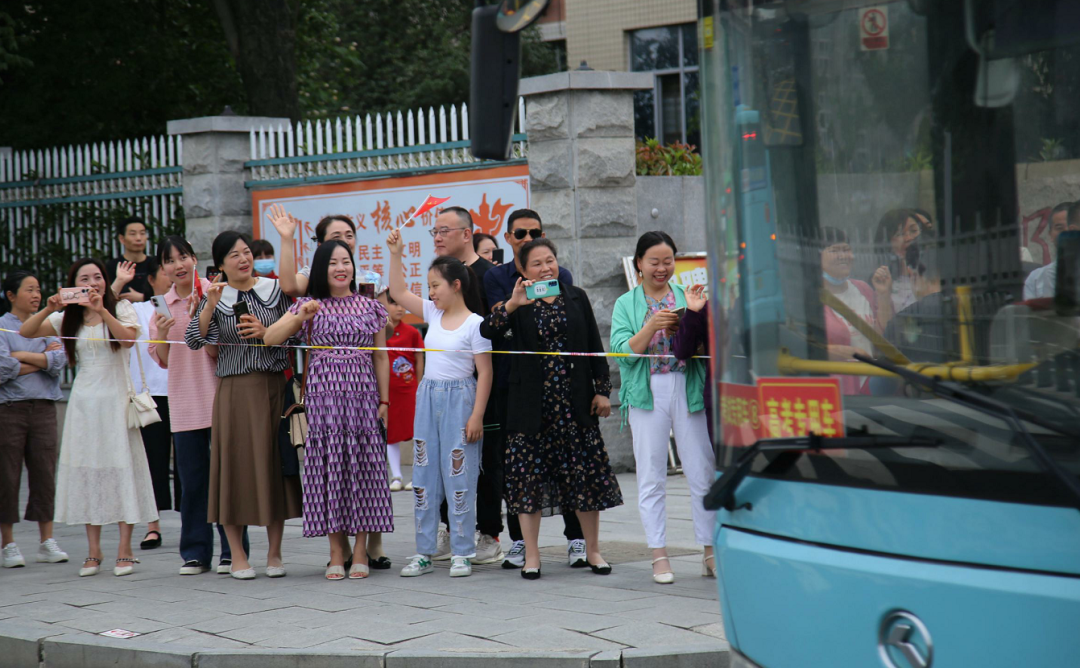 上午7时许,各学校考生陆续集合集中乘车前往各自考点,虽然考生们由专车接送至考点,仍有不少家长到学校送考,为孩子人生中的重要时刻加油鼓劲。