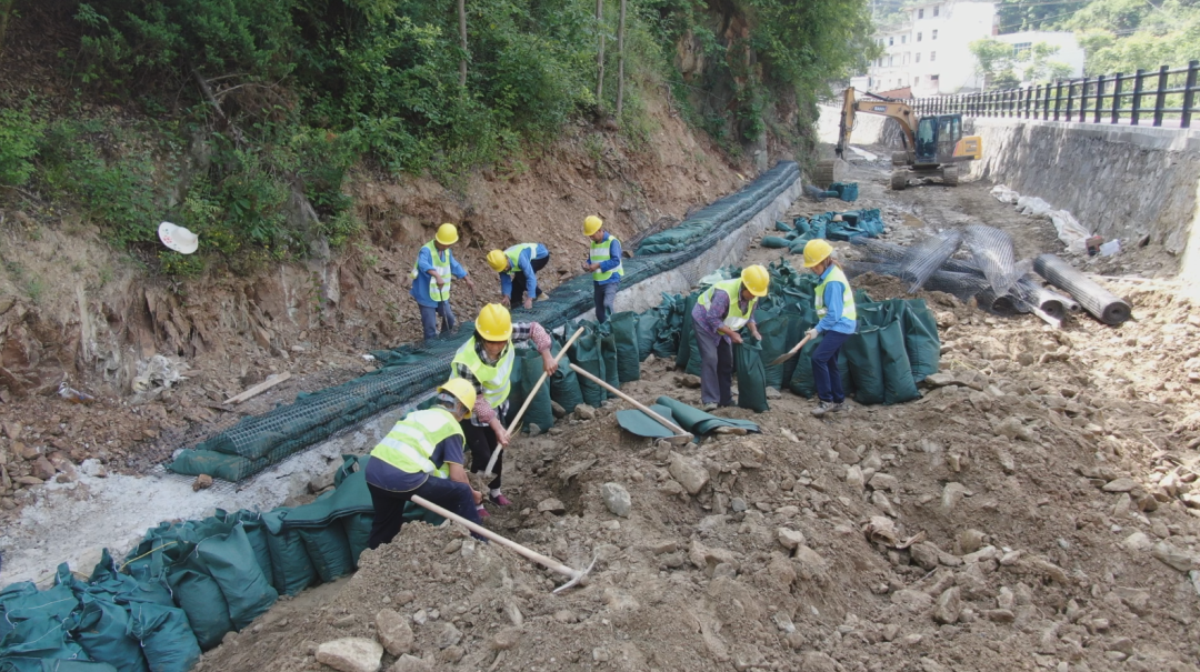 记者在茶店镇王家湾村神定河流域汪家河及武家沟段水环境综合治理工程项目现场看到,工人师傅们正在将泥土装满生态袋,用扎线包扎好,通过有顺序的放置,形成生态挡土墙。