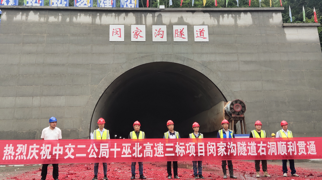 十巫北3标项目共计3座隧道(青岩隧道、石门村隧道、闵家沟隧道),本次完成贯通的闵家沟隧道,位于湖北省十堰市郧阳区鲍峡镇东沟村,左幅370米,右幅405米。闵家沟隧道双幅顺利贯通,标志着十巫北项目建设取得阶段性胜利。