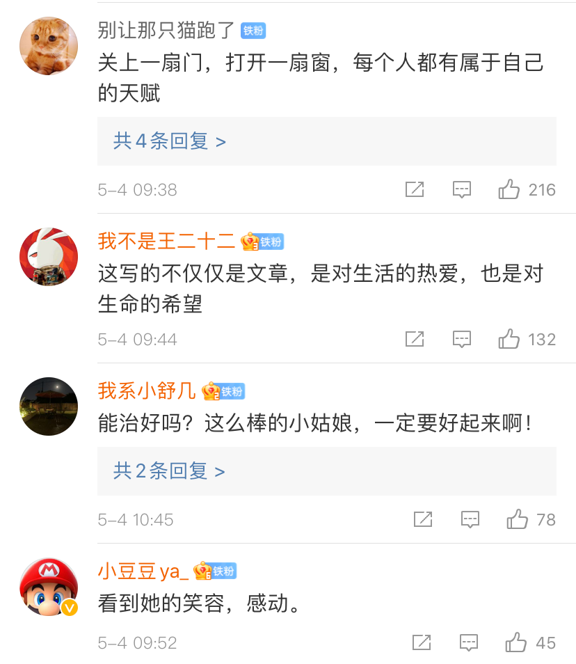 许多网友被煜琳的故事感动