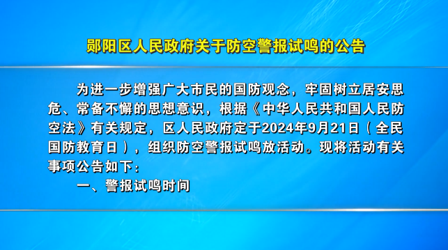 郧阳区人民政府关于防空警报试鸣的公告