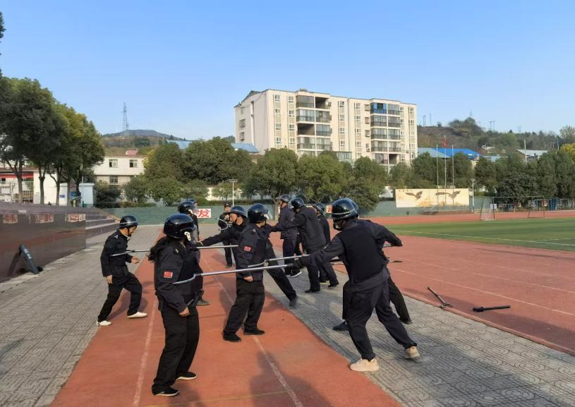 本次演练根据具体校情,模拟了可能发生的暴力恐怖场景,包括对外来人员查讯、突发事件紧急疏散、现场控制与嫌疑人制服等环节。活动中,学校安保人员现场演练了对警用盾牌、警棍、钢叉等器械装备的使用方法、亲身体验应急处置流程,学生们体验了基本的防身技巧和紧急避险知识。