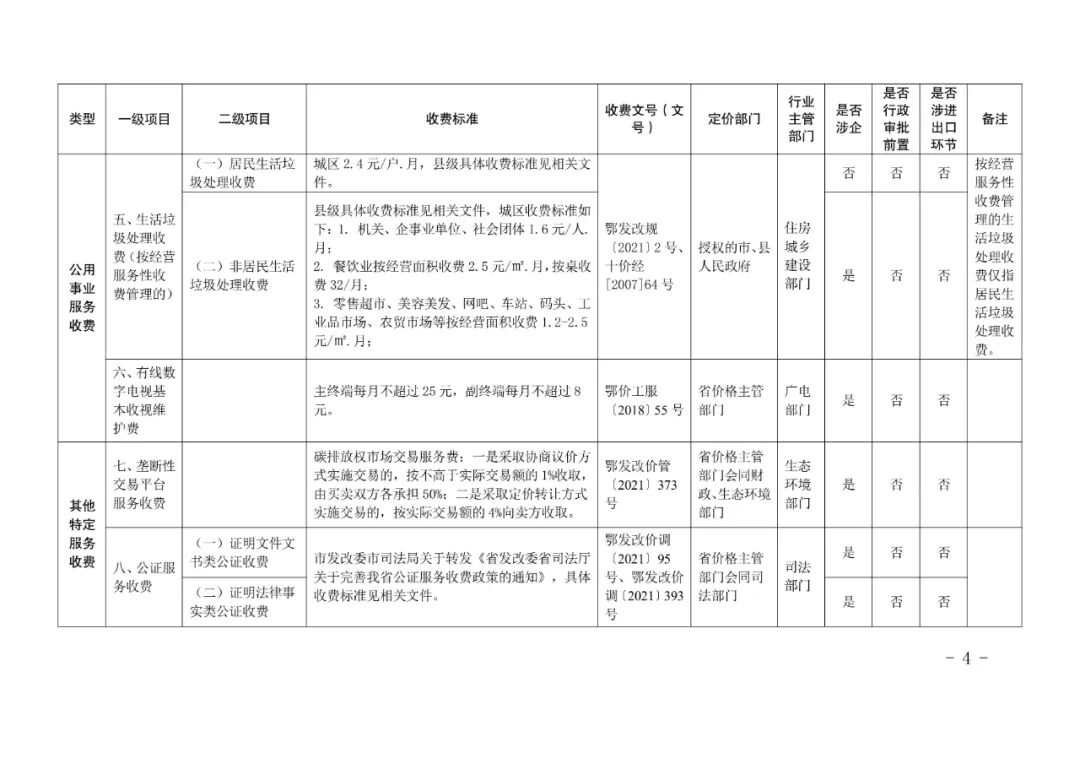 ➡️居民生活垃圾处理收费:城区2.4元/户·月。