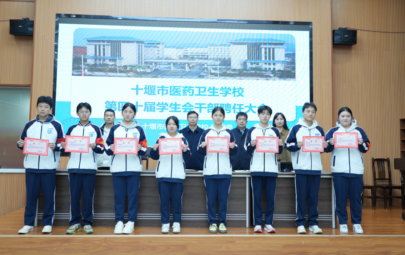 10月29日,十堰市医药卫生学校第四十届学生会干部聘任大会在滨江校区实训楼一楼会议室隆重举行。会议由校党委委员王顺义主持。校团委书记李彬彬宣读了《关于聘任第四十届学生会干部的决定》,随后校领导为新一届学生会干部颁发了聘书并佩戴胸牌,标志着第四十届学生会正式履职。