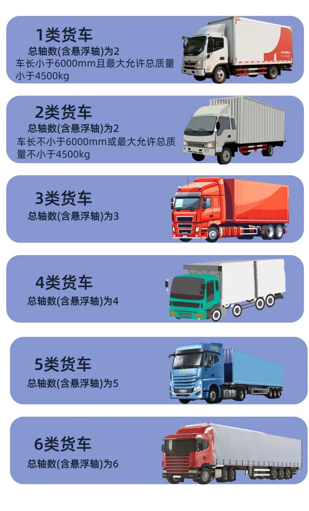 3.货车分类依据车辆总轴数以及车长和最大允许总质量。