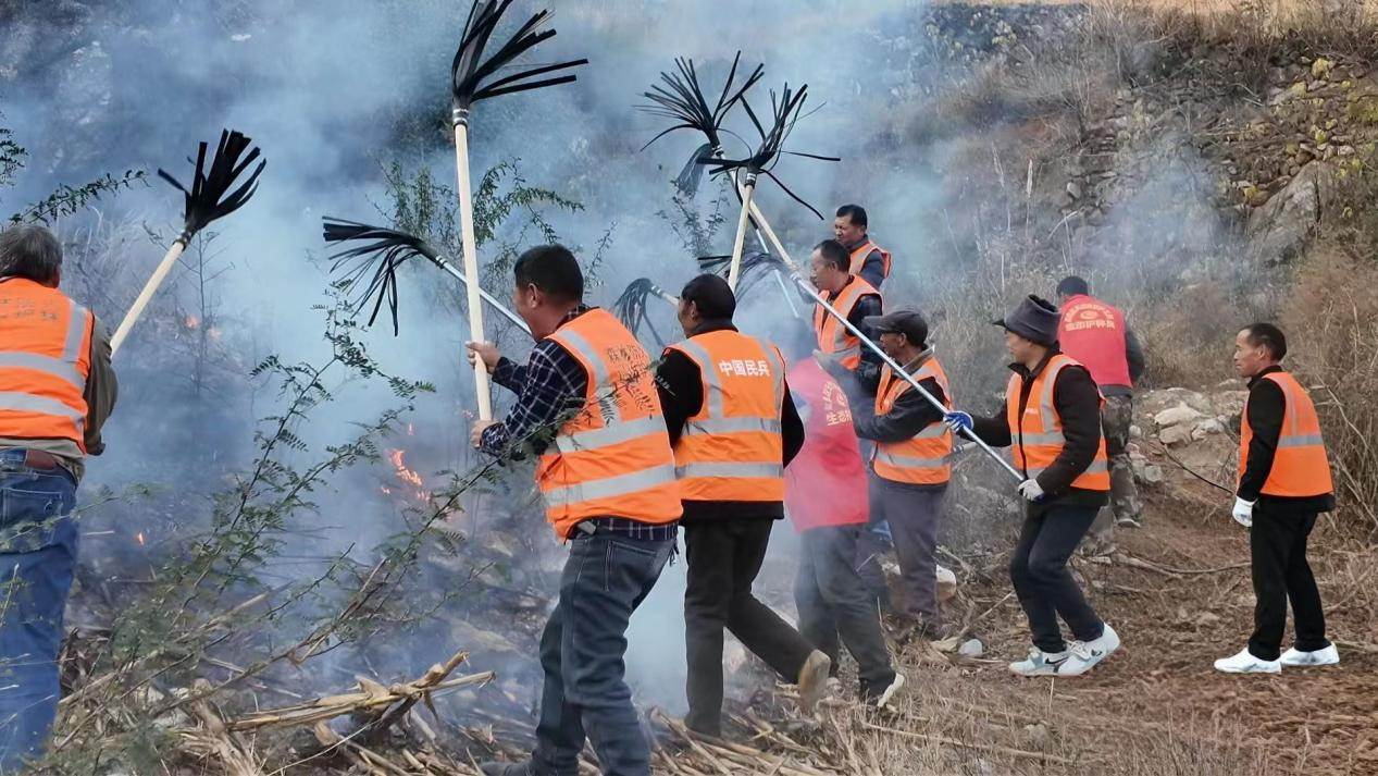 12月8日,刘洞镇应急办、生态护林员、基干民兵、镇退役军人“南水北调守井人”志愿服务队等共26人在刘洞镇李家村三组开展森林灭火应急演练。