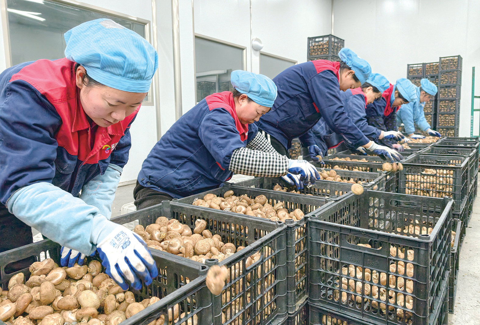 3月13日,在位于郧阳区的瑞尔菌业有限公司,工人们忙着分拣、烘干、包装香菇,一筐筐新鲜香菇经分拣后装入冷藏车,发往河南等地市场;一箱箱烘干香菇完成封装,即将出口日本。